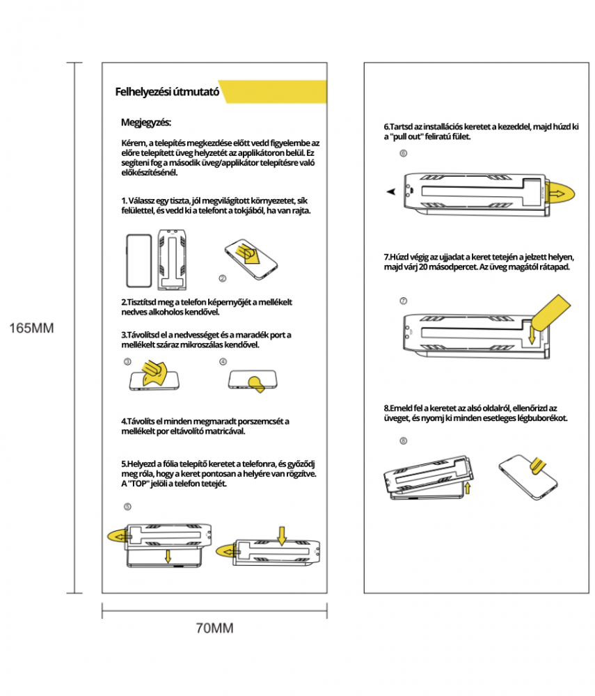 5. Helyezd a fólia telepítő keretet a telefonra, és győződj meg róla, hogy a keret pontosan a helyére van rögzítve. A "TOP" jelöli a telefon tetejét.