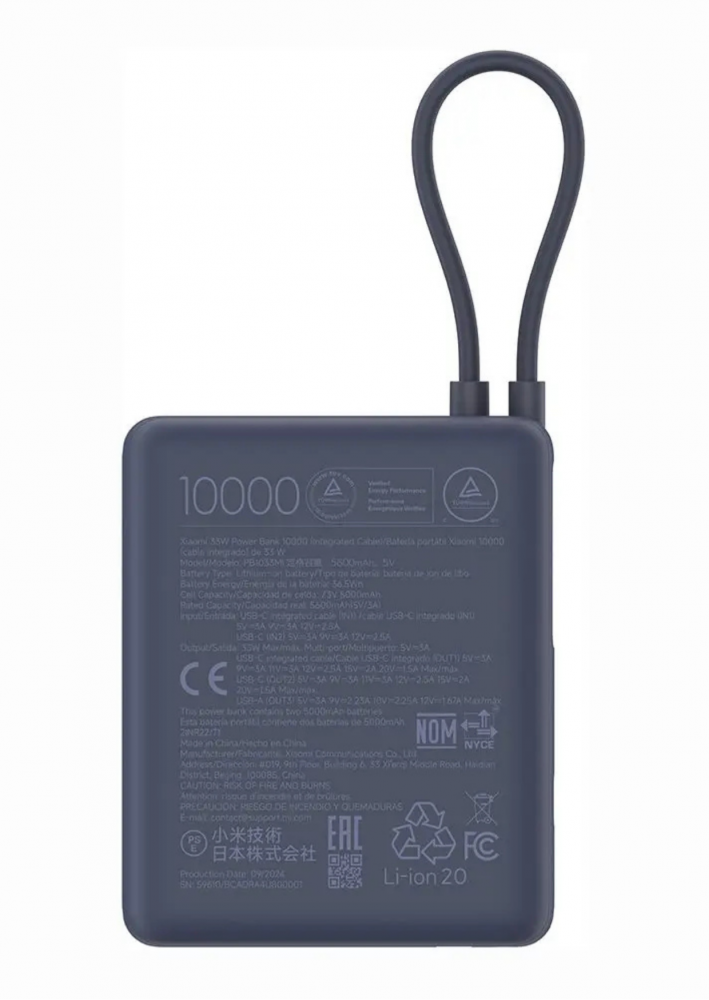 Xiaomi Power Bank 10000mAh 33W usb-c kábel kék BHR9334